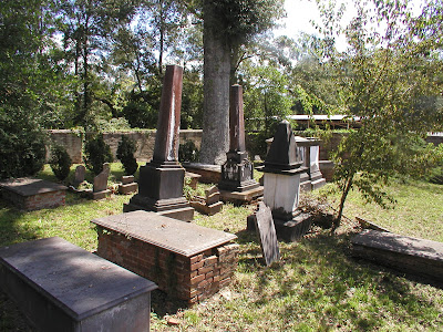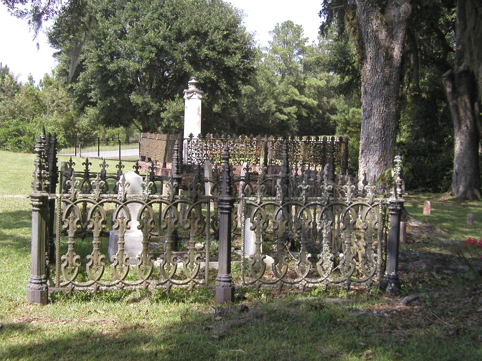 There are many private, family cemeteries scattered throughout the area. The oldest, which is still in use and within the original family -- the Surgets, whose descendants are the McNeils who also own Elmscourt -- can be found near Kingston at Cherry Grove Plantation, which has been in the same family since it was obtained as part of a Spanish land grant in the late 1700s.