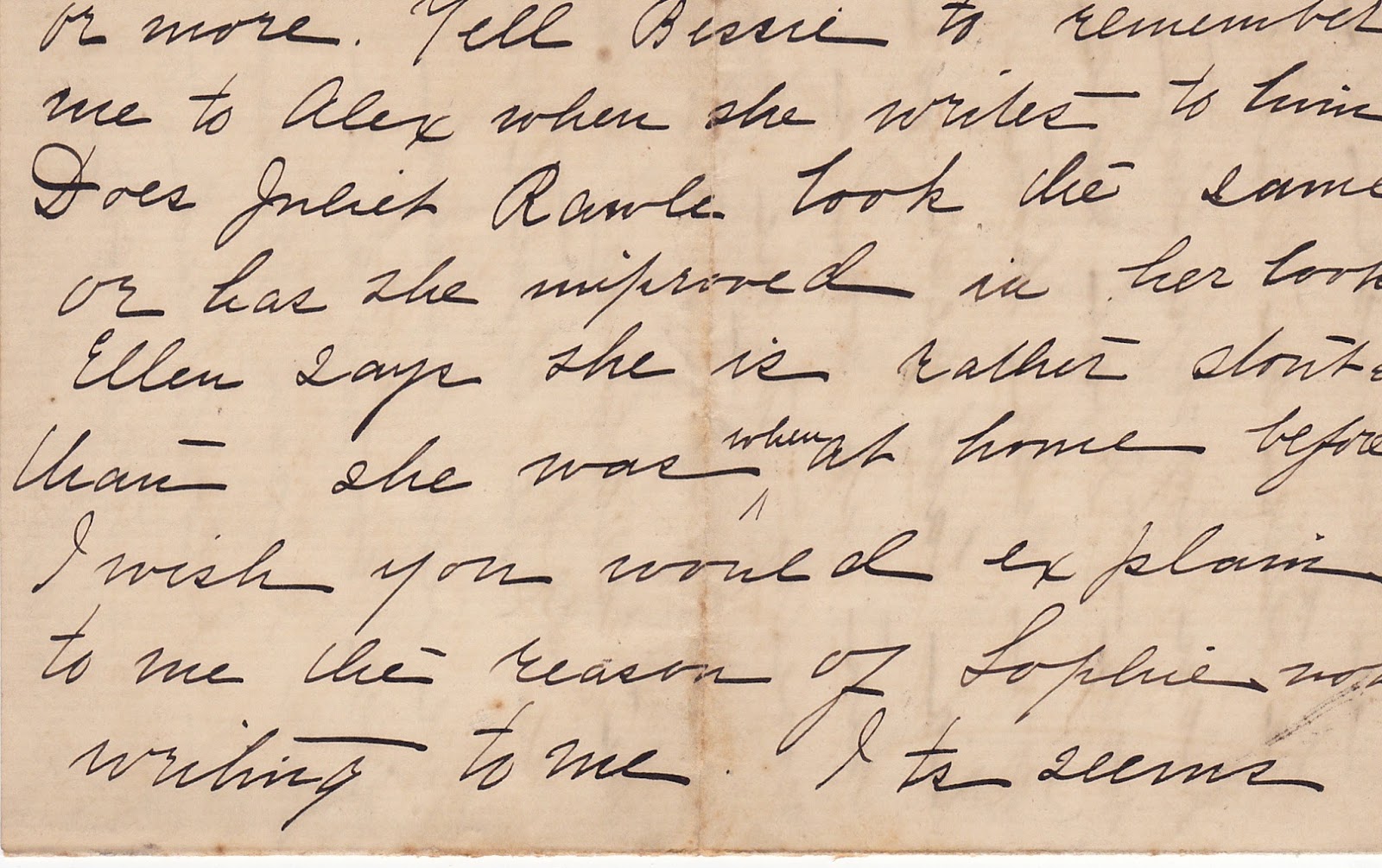 explain to me the reason of Sophie not writing to me. It seems rather queer in her and I don’t
